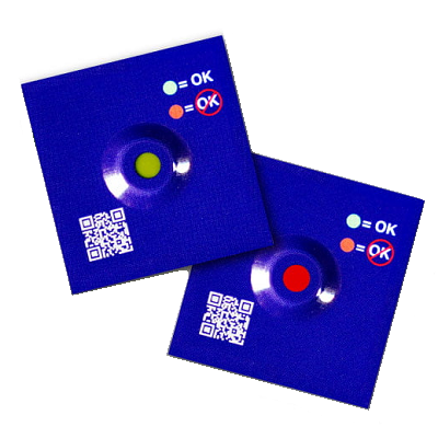 Este sencillo indicador controla el descenso de temperatura de CERO grados. Si la temperatura donde estuvo el indicador es superior a cero grados el circulo será de color verde, en el caso que descienda la temperatura del rango del indicador virará a color rojo.